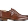 Cette chaussure cuir est réalisée en cousu Blake sur semelle cuir avec patin, avec un dessus en veau box aniline patiné et trépointe en cuir. Un must avec des pantalons classique ou des costumes ajustés.