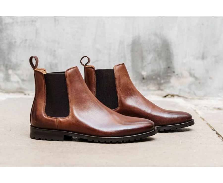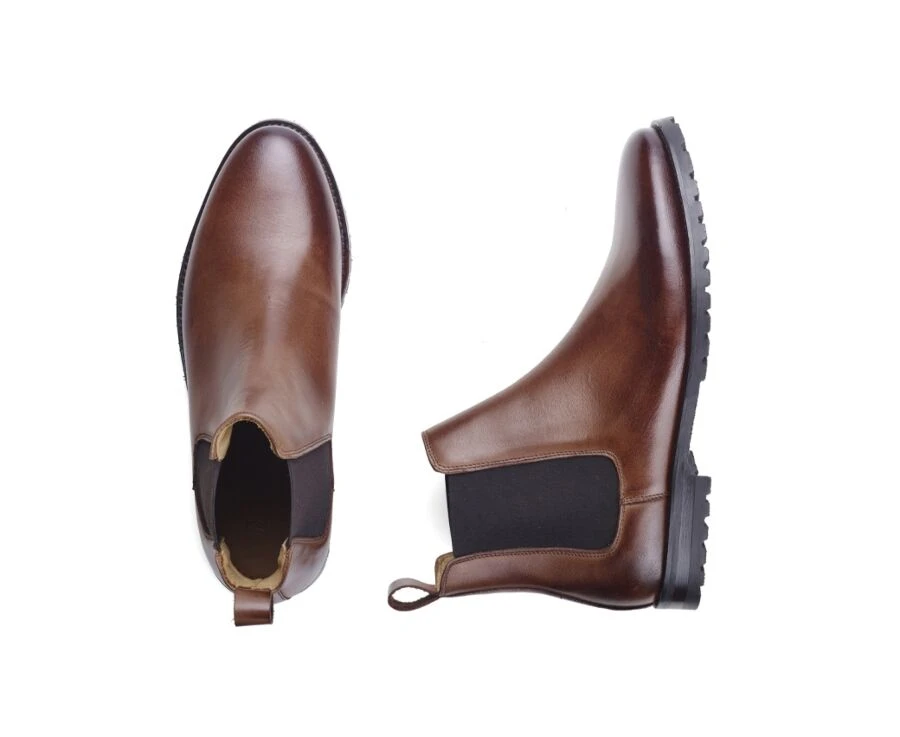 Chelsea Boots Semelle Gomme Avec Talon Bottier Chocolat Patiné – BENTFIELD GOMME