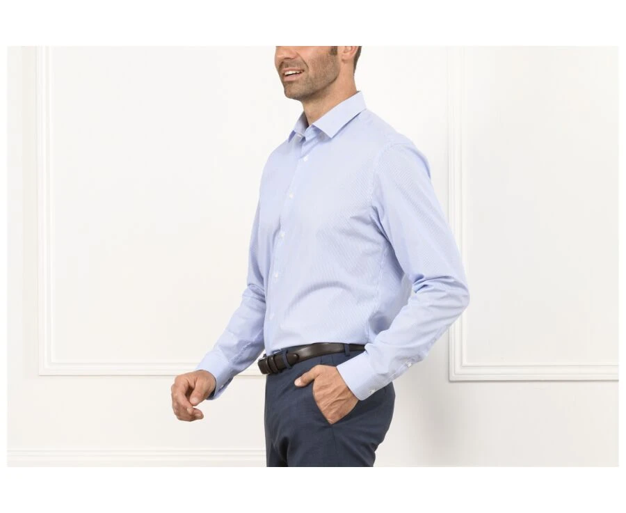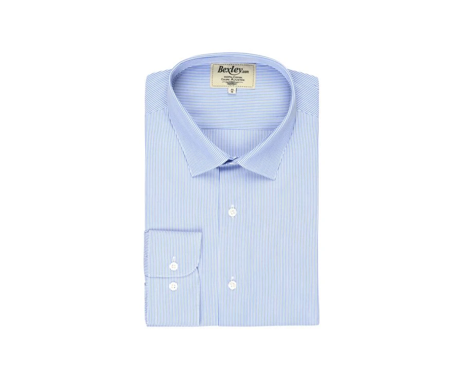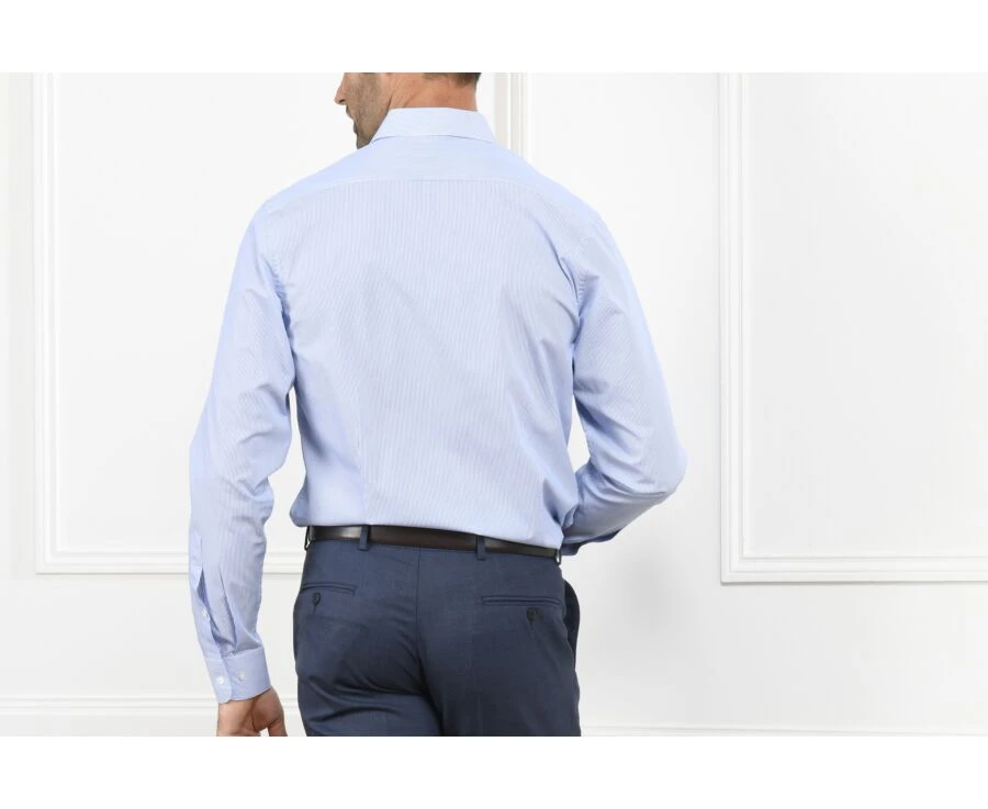 Chemise à Fines Rayures Bleues – Col Français – AUBERTIN CLASSIC
