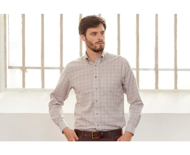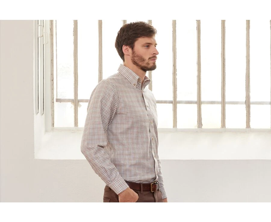 Chemise Beige Twill à Carreaux – Poche Poitrine – BENETTH
