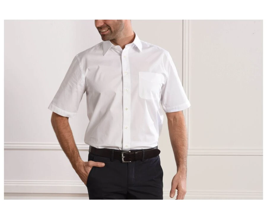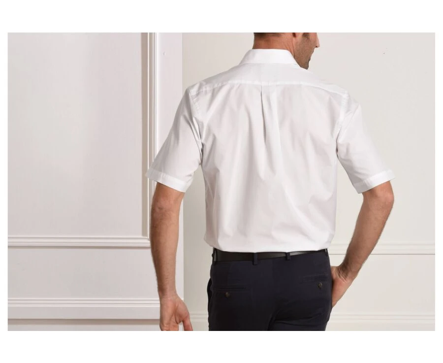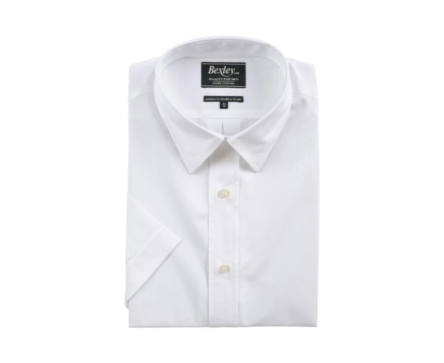 La chemise homme Albert Manches Courtes Blanche est réalisée en popeline 100% coton double fil 115g/m², avec une finition toucher doux.