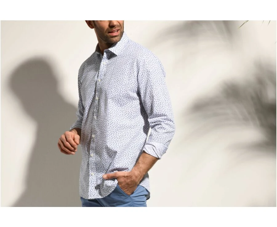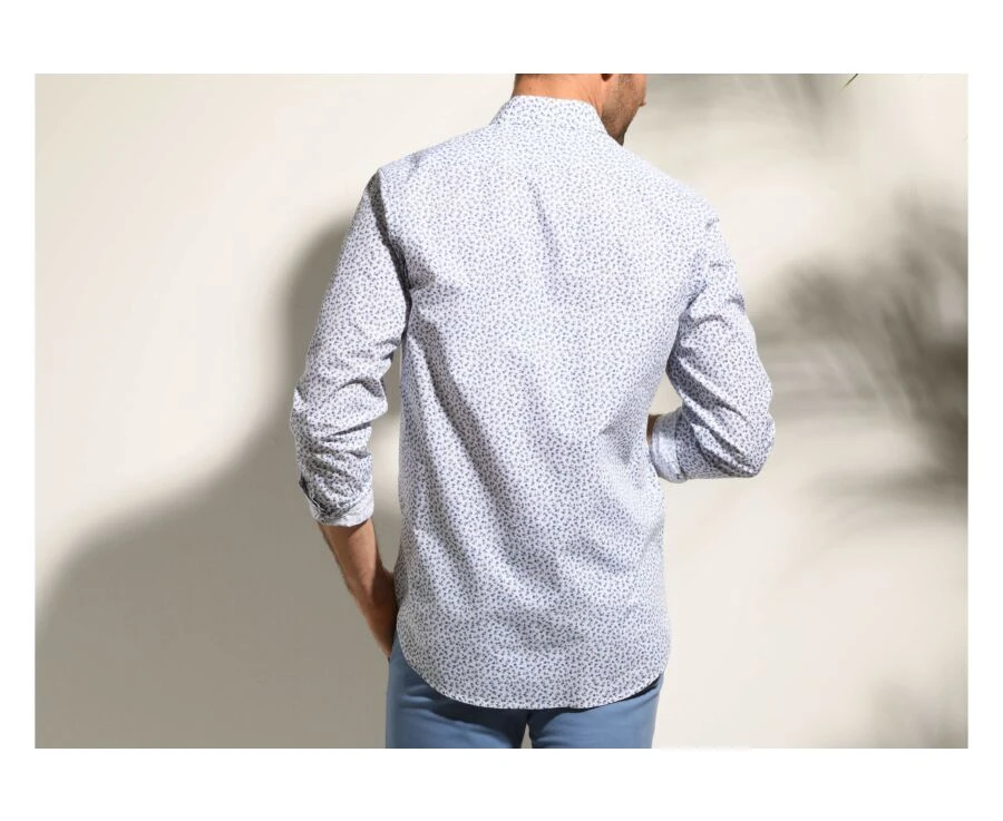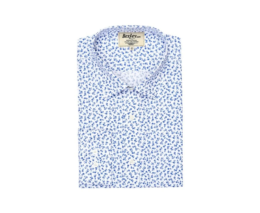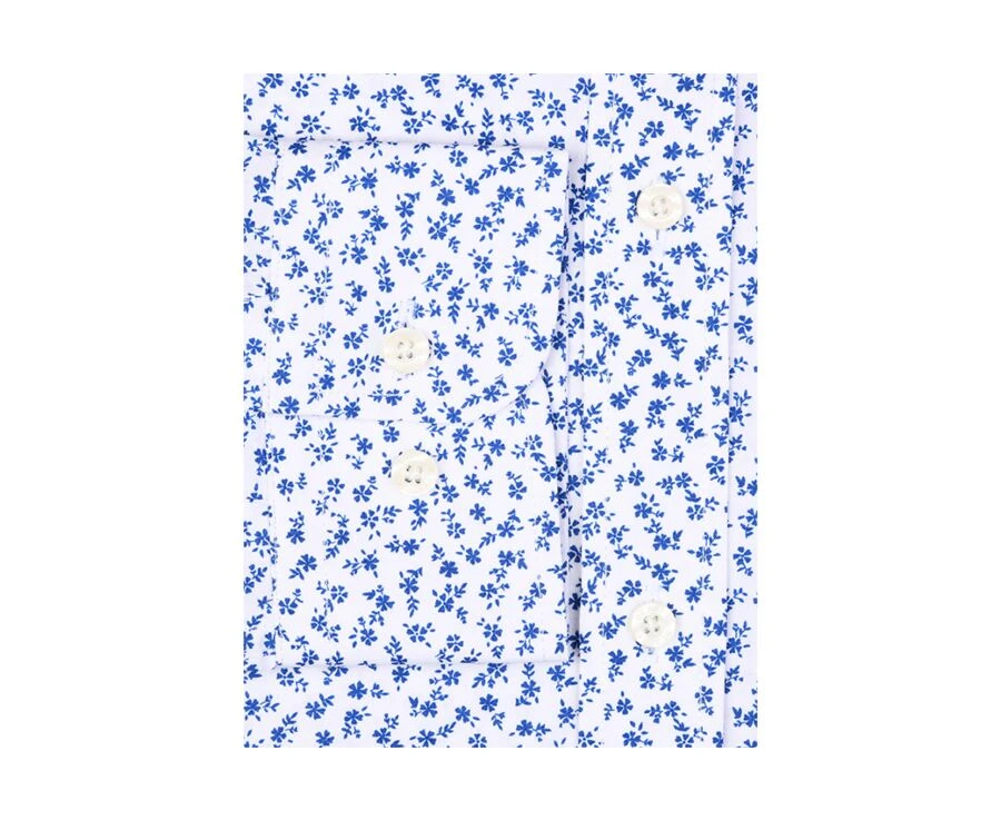 Chemise Blanche Imprimée Fleurs Bleues – Col Français – MATHURIN