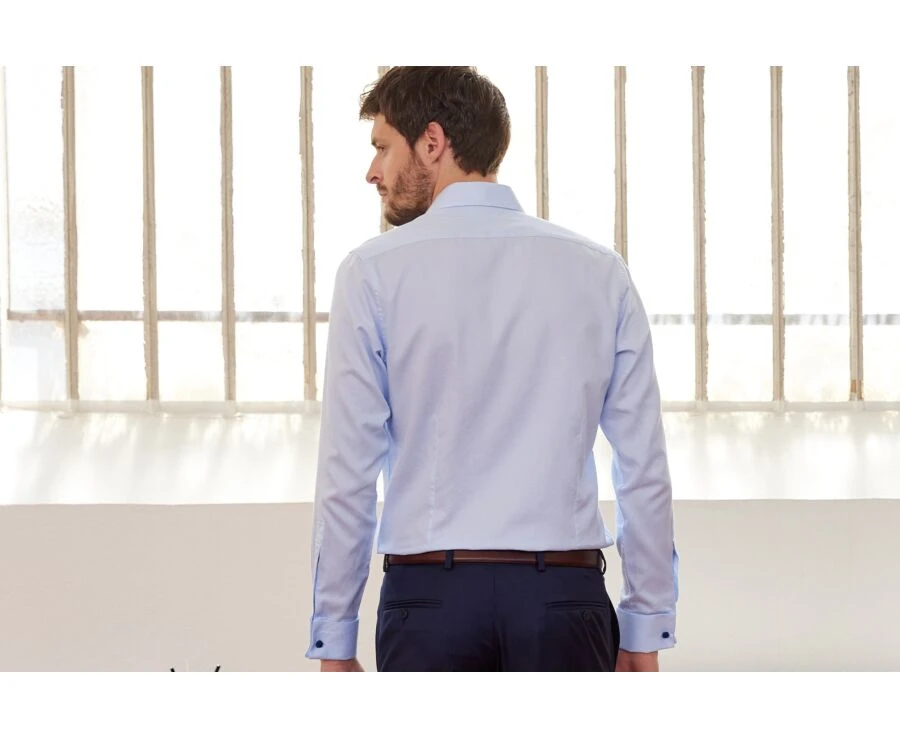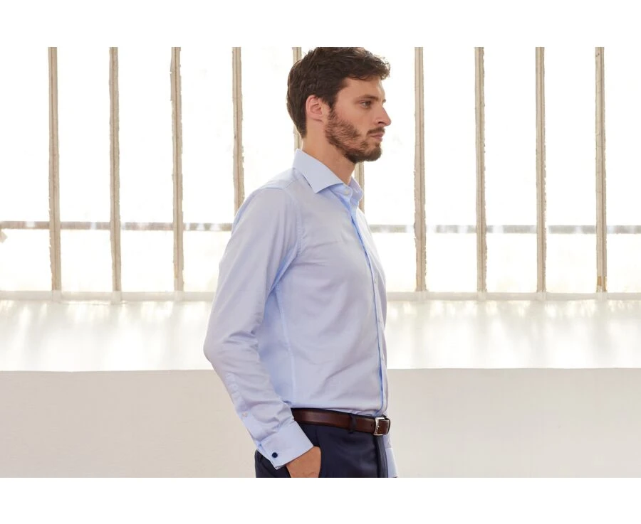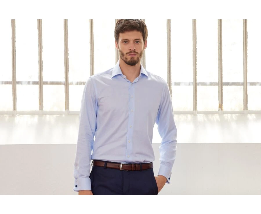 La chemise homme Paolo Bleu pâle à boutons de manchette est réalisée en twill 100% coton double fil 120g/m², avec une finition toucher doux.
