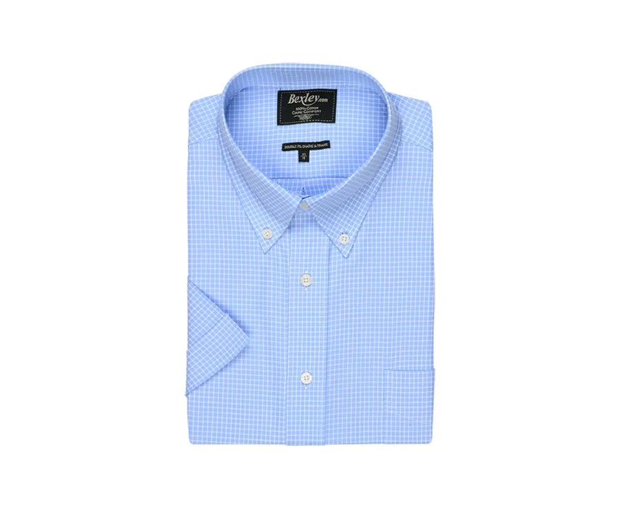 Chemise Bleue Carreaux Fins Blancs – Poche – CLAYN MC