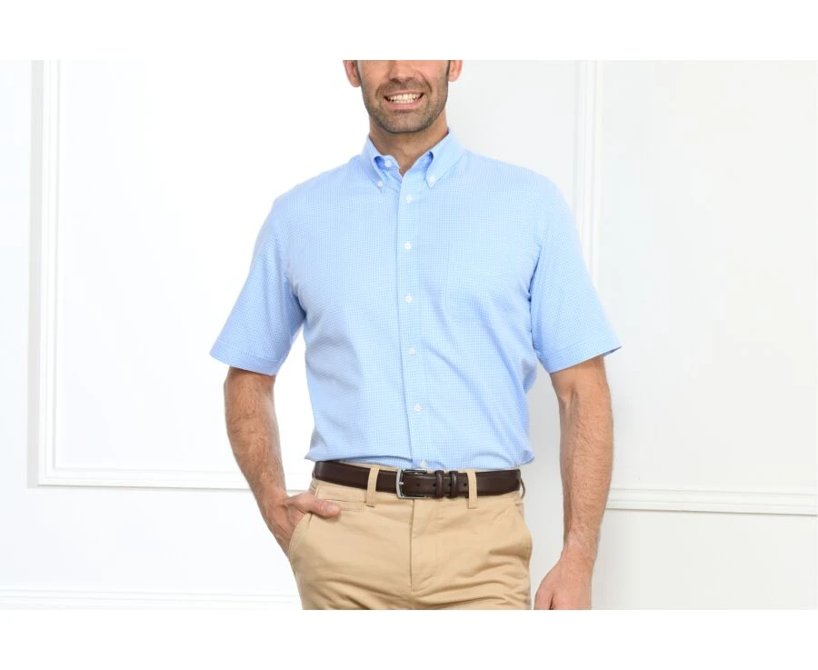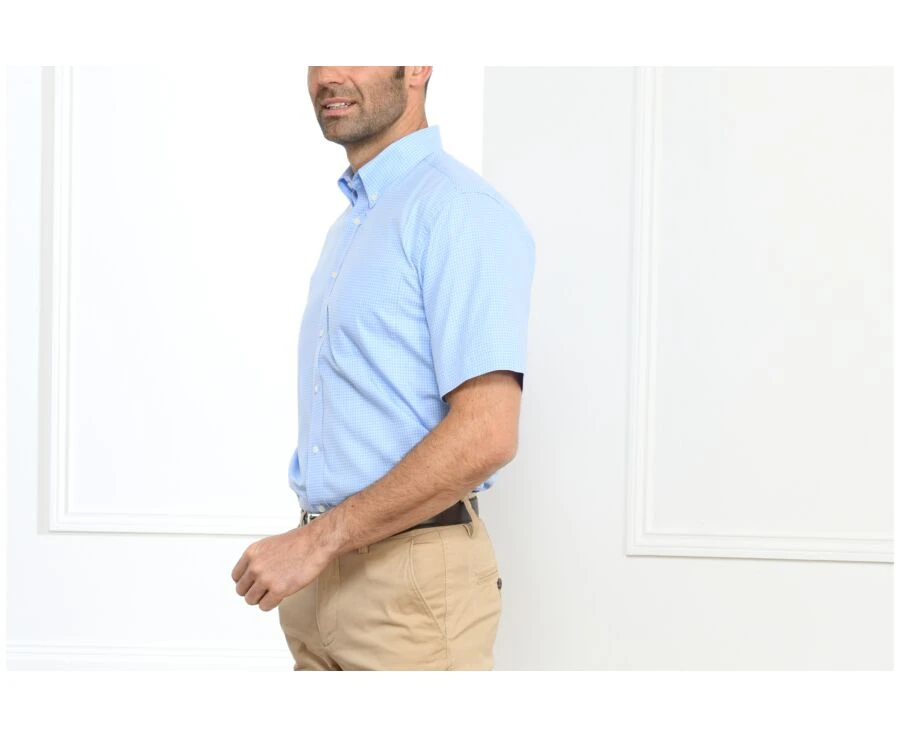 La chemise Manches Courtes Clayn Bleu clair et blanc est réalisée en twill 100% coton double fil 125g/m², avec une finition toucher doux.