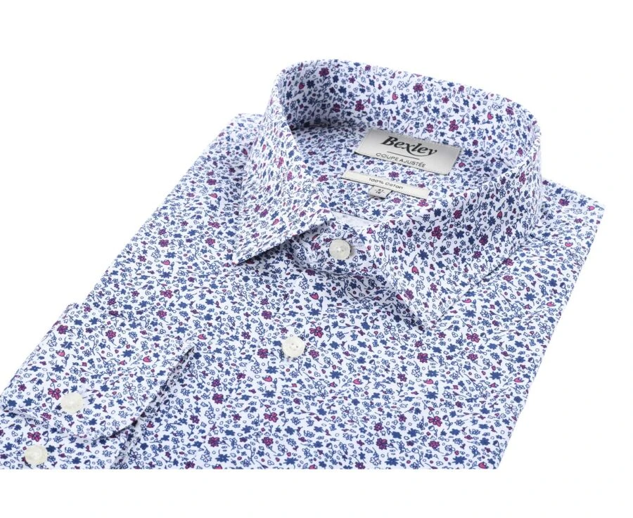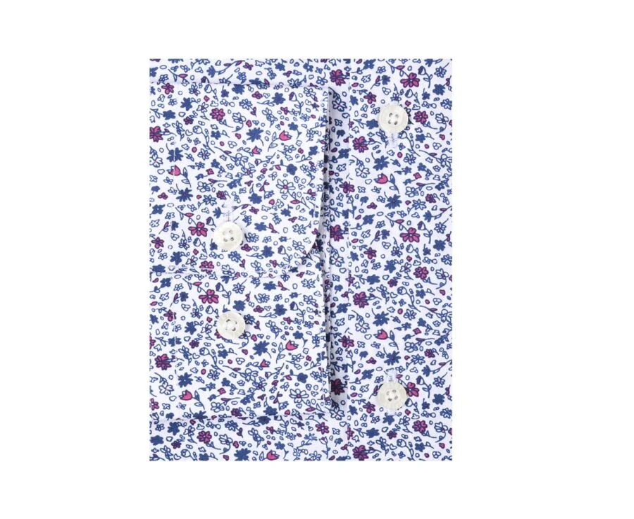 Chemise Coton Blanche Imprimée Fleurs Bleues Et Roses – THÉOBERT