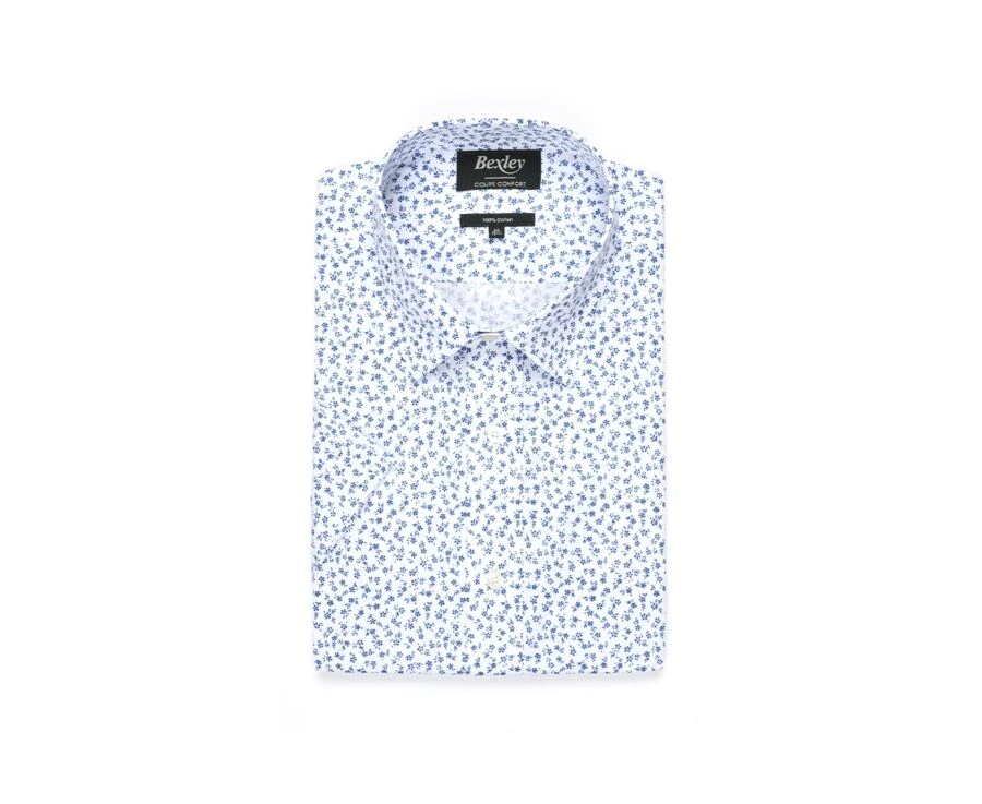 Chemise Coton Blanche Imprimée Fleurs Bleues – FLORANTIN MC
