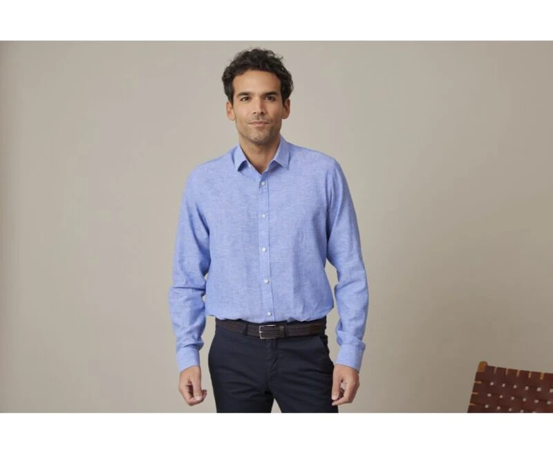 Chemise homme Silbert – Chemise coton/lin – Coupe ajustée – Col français