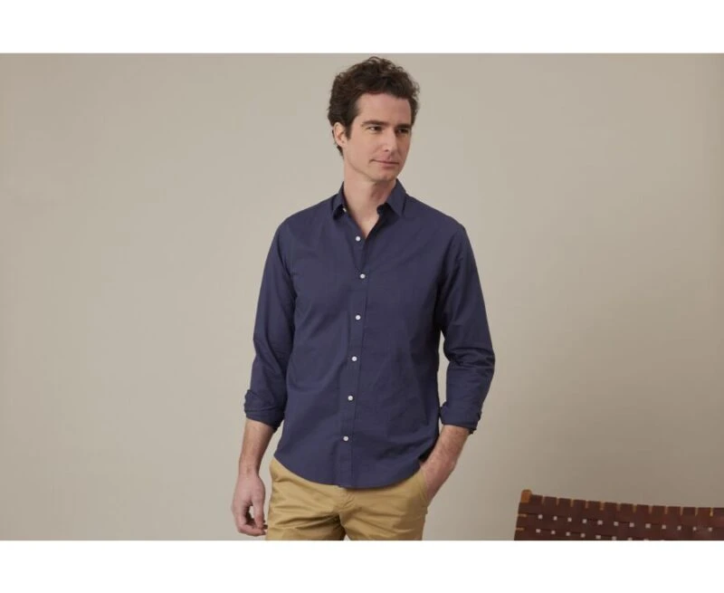 La chemise Silbert est réalisée en voile de 85% coton/15% lin 85g/m², avec une finition lavée.