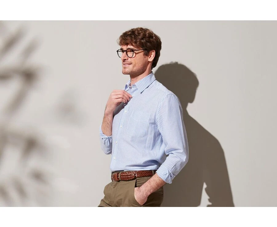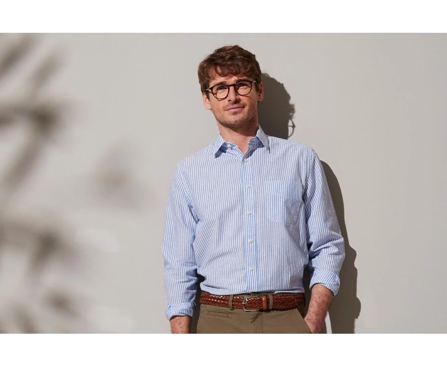 Chemise Coton Lin Rayée Bleue Et Blanche – VALOIRE