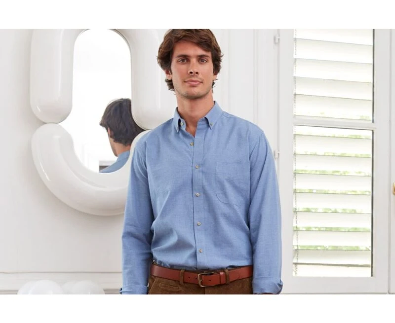Chemise manches longues homme – Chemise coton – Coupe ajustée – Col américain