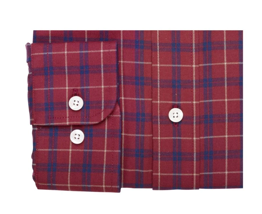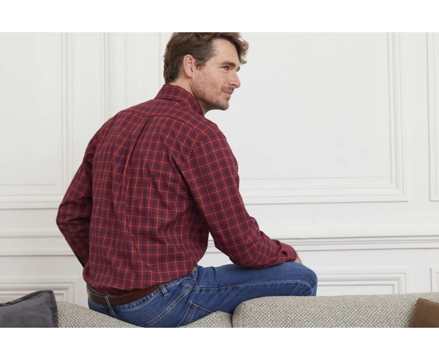 Chemise Flanelle Rouge Sombre à Carreaux Navy Et Gold – FARLOW