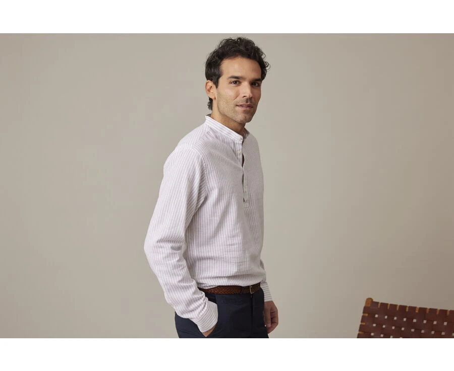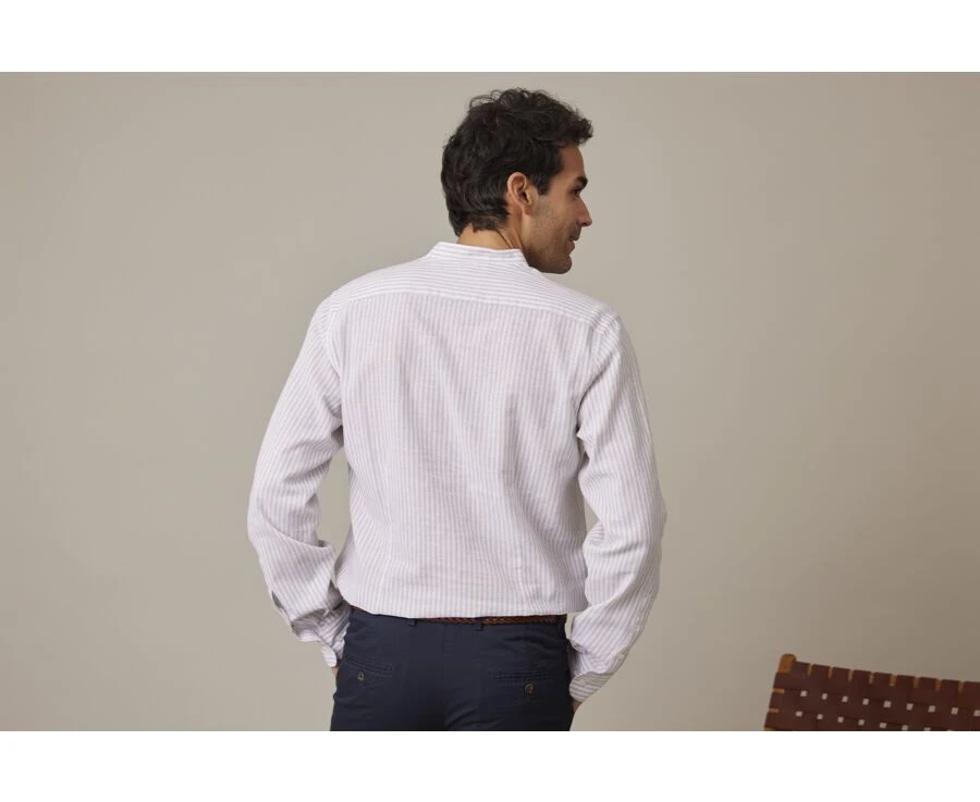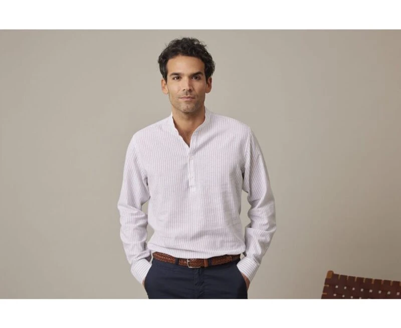 Chemise homme ville Valbert – Chemise coton/lin – Coupe Tunique – Coupe ajustée Raccourcie – Col officier