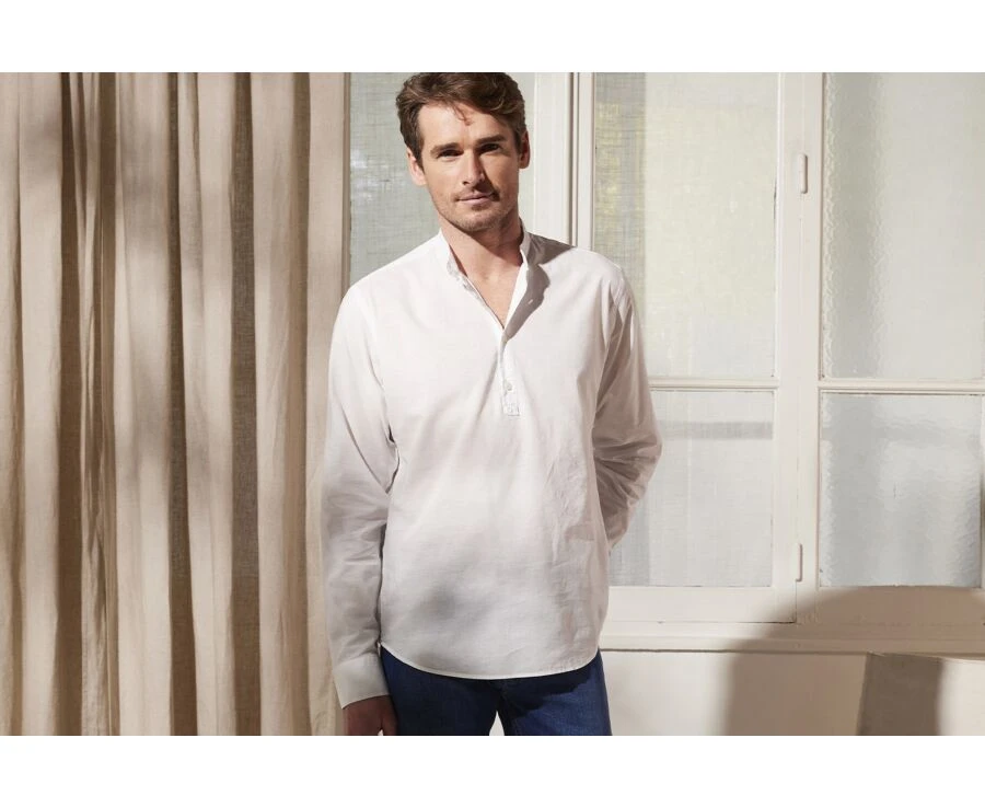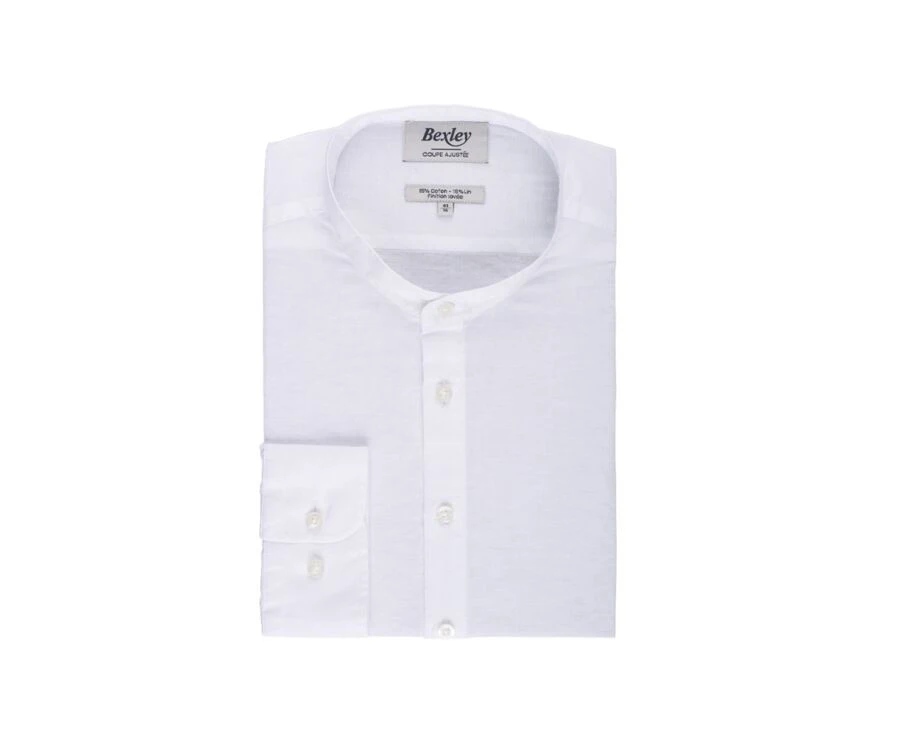 Chemise homme Valbert – Chemise coton/lin – Coupe Tunique – Coupe ajustée raccourcie – Col officier