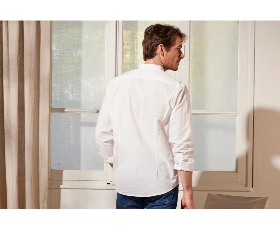 La chemise manches longues Valbert est réalisée en voile de 85% coton / 15% lin 85g/m², avec une finition lavée.