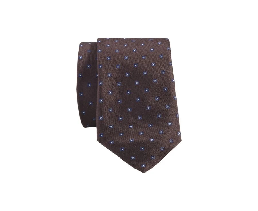 Cravate Homme Soie Motif Micro Fleur Marron Et Navy