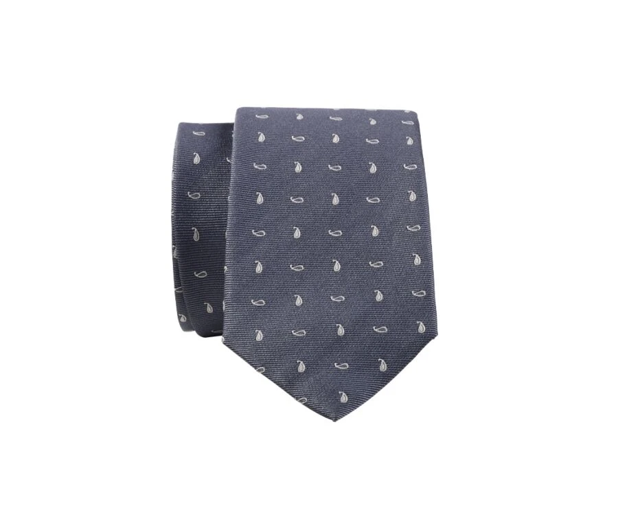Cravate Homme Soie Motif Palmette Gris Et Écru