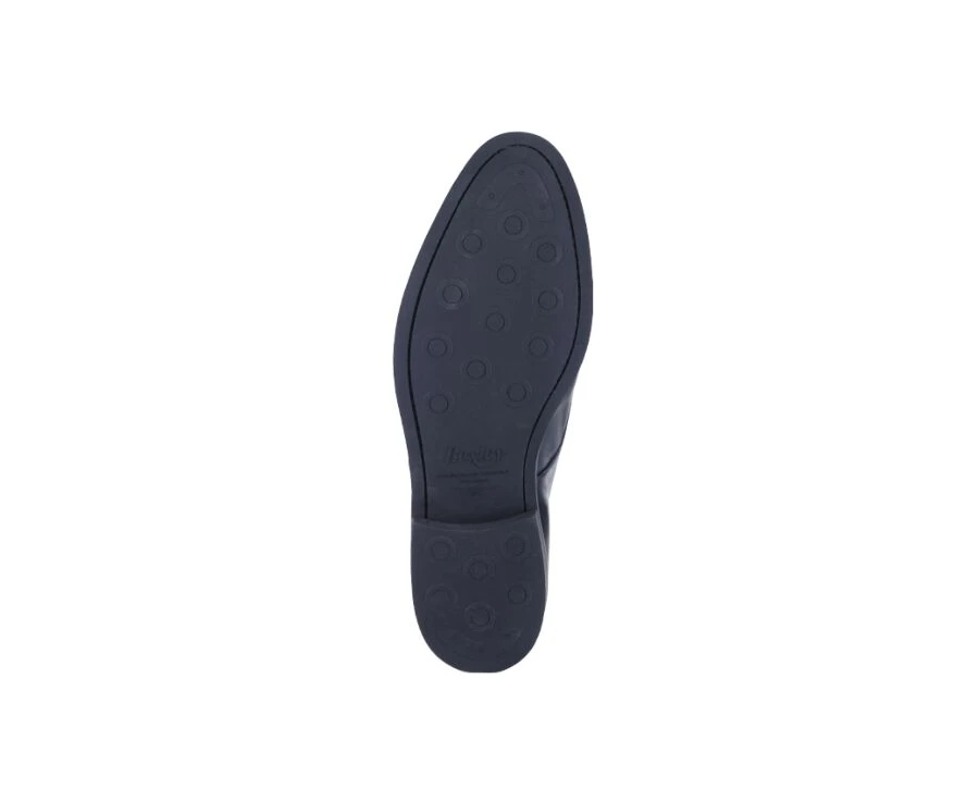 Cette chaussure pour homme est réalisée en cousu Blake avec un dessus en veau patiné à la main, sur une semelle en gomme avec trépointe. La semelle gomme ville slim est fine et discrète et permet une adhérence renforcée par ses plots quasi invisibles.