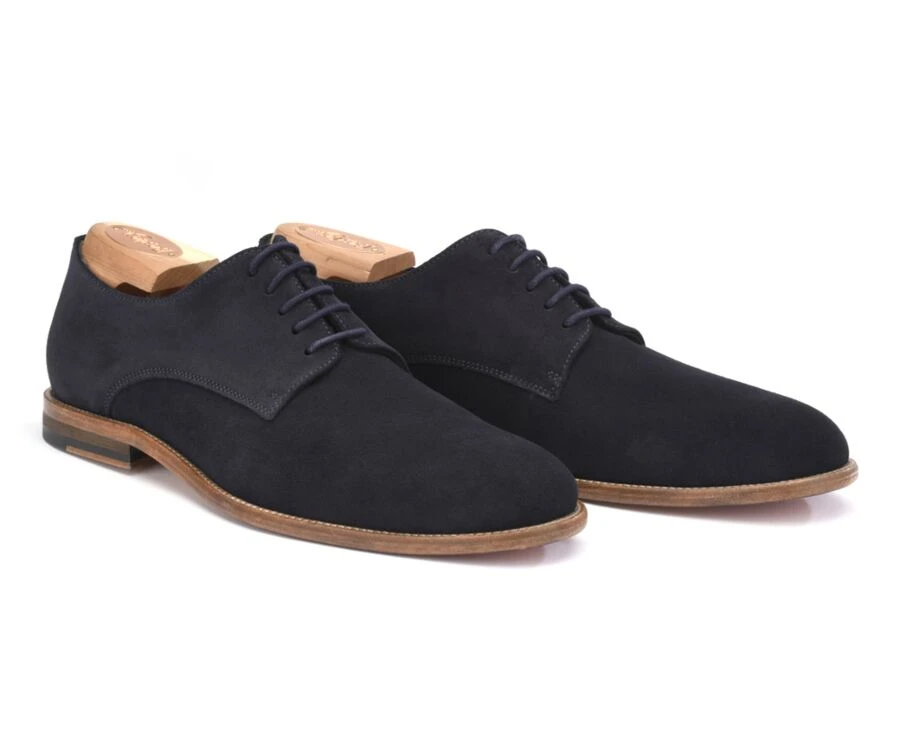 Derbies Homme Velours Marine Semelle Cuir – HILPERTON