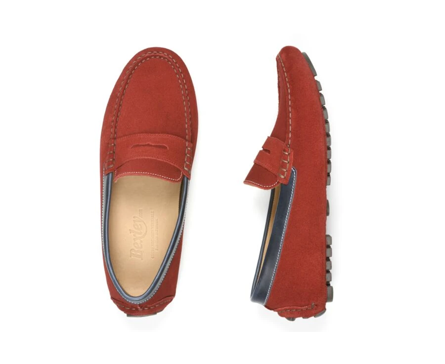 Mocassin été Homme Cuir Velours Rouge Et Cuir Navy – FERGUSON