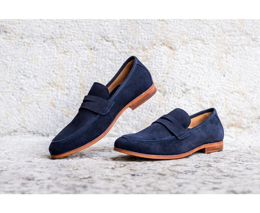 Mocassin Homme Cuir Velours Marine – DERVIO