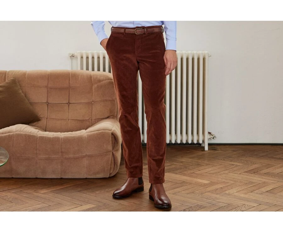 Pantalon Chino Velours Côtelé Homme Caramel Foncé – NORMAN