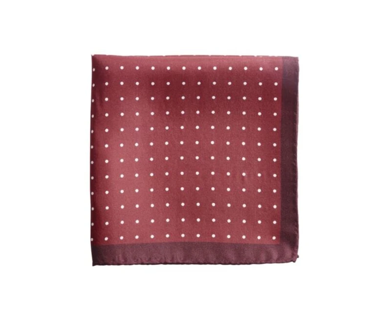 Pochette De Costume En Soie à Pois Bordeaux Et Blanc