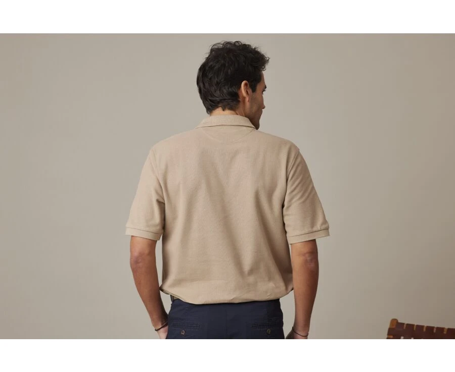 Gareth est un polo beige en maille piquée, devenu un basique du vestiaire estival pour un look casual chic.