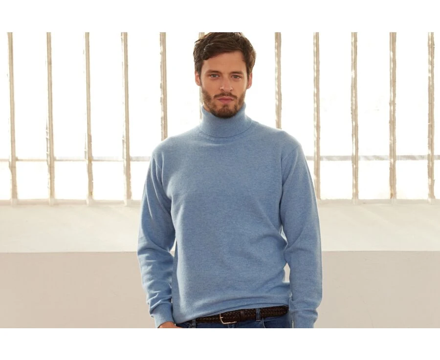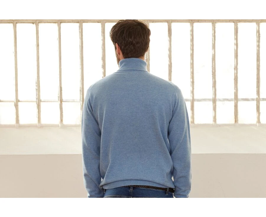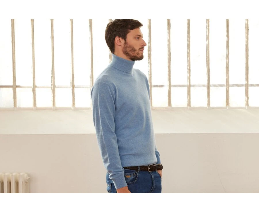 Pull Col Roulé Homme Laine Bleu Chiné – EMERIC