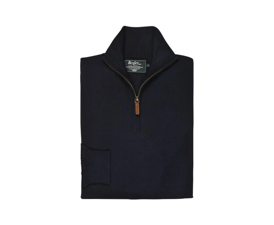Pull Col Zippé Homme Fin Coton Bio/cachemire Navy – VLAD