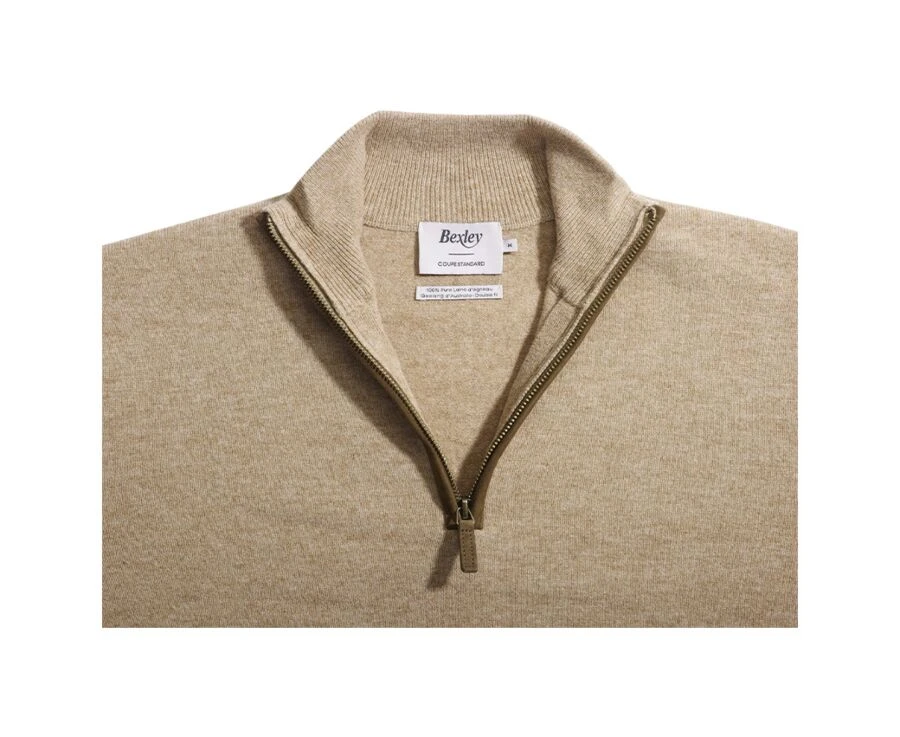 Pull Col Zippé Homme Laine Beige Foncé Chiné – KEITHY