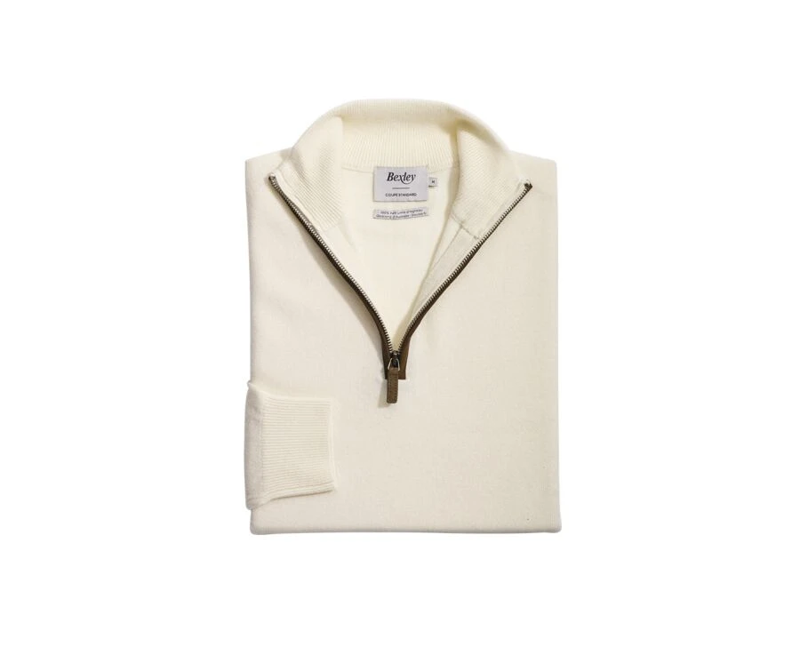 Pull Col Zippé Homme Laine Écru – KEITHY