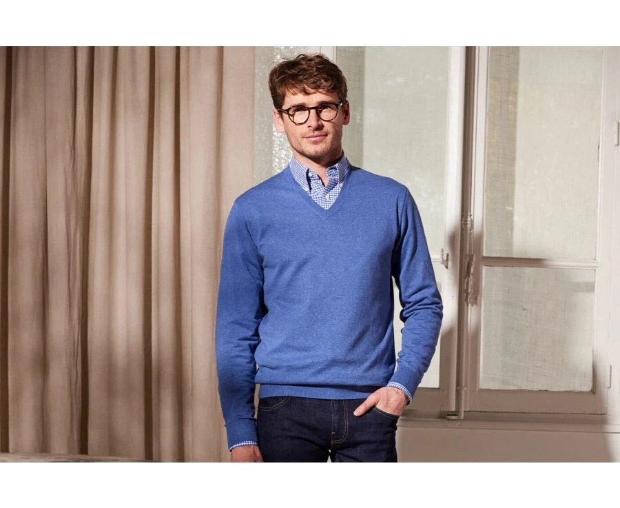 Pull Fin Coton Bio/cachemire Col V Bleu – VADIM