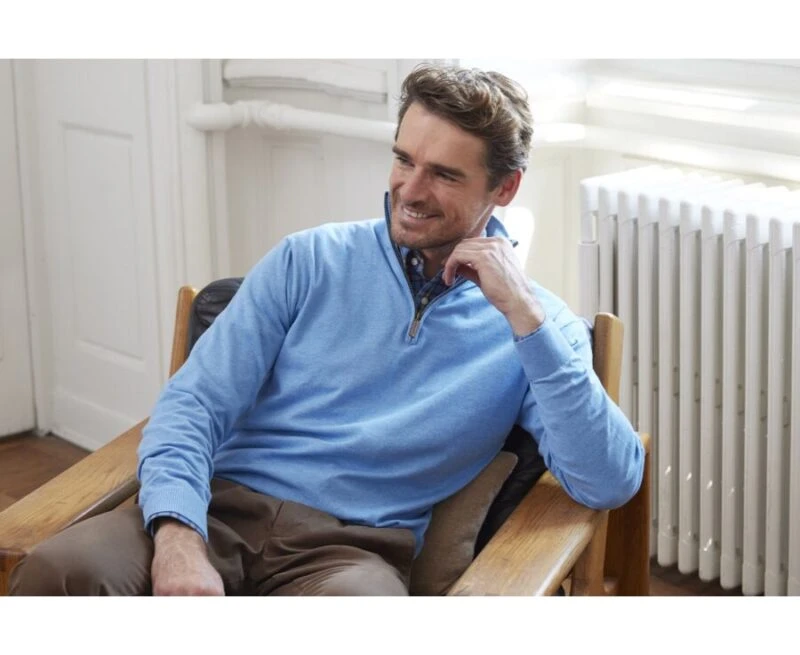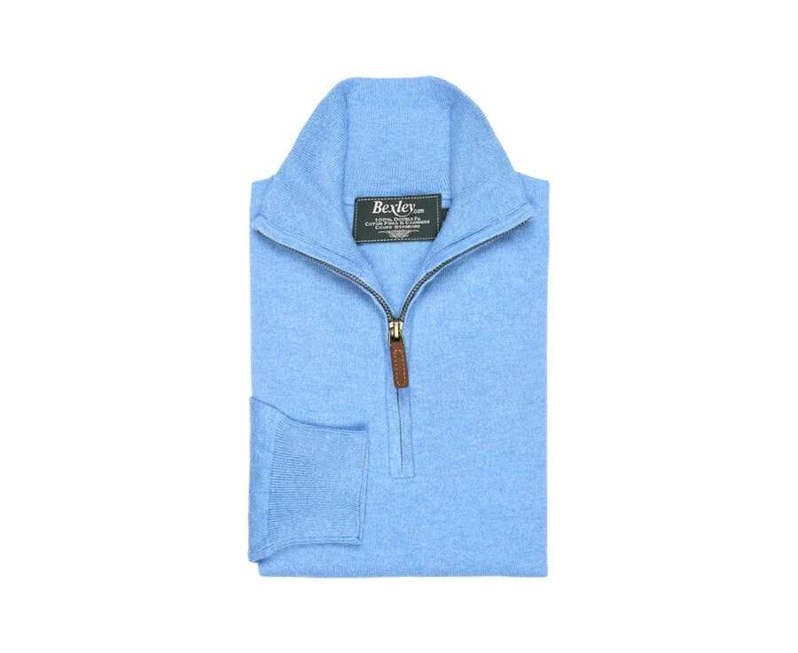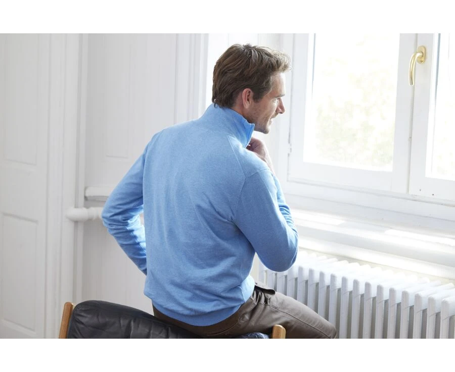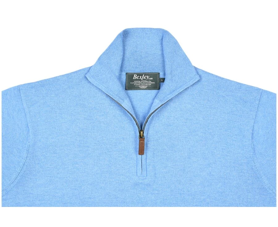 Pull Fin Homme Coton Bio/cachemire Col Zippé Bleu Chiné – VLAD