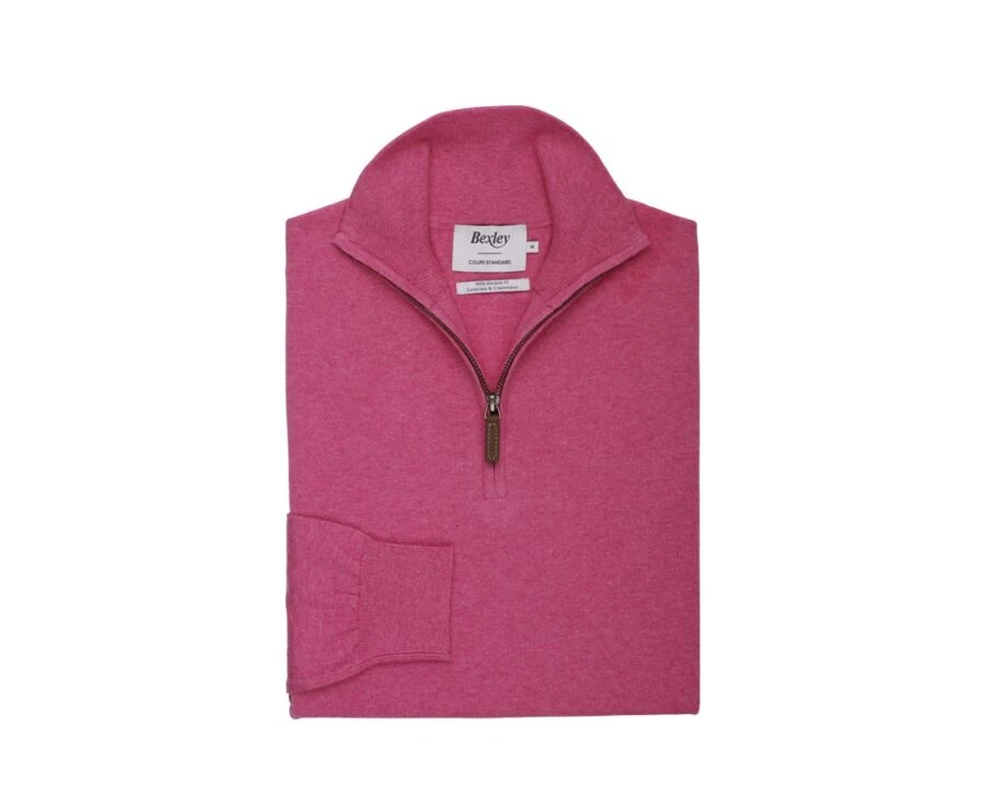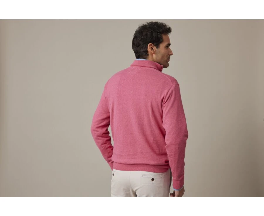 Pull Fin Homme Coton Bio/cachemire Col Zippé Framboise Chiné – VLAD