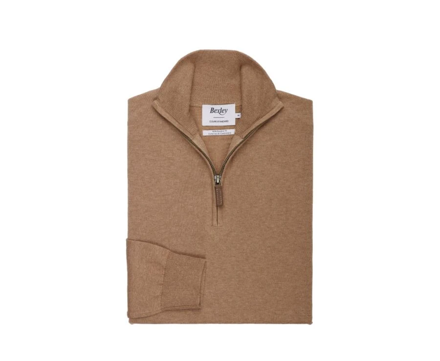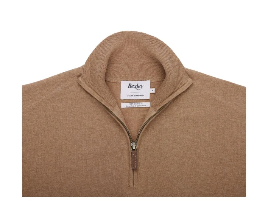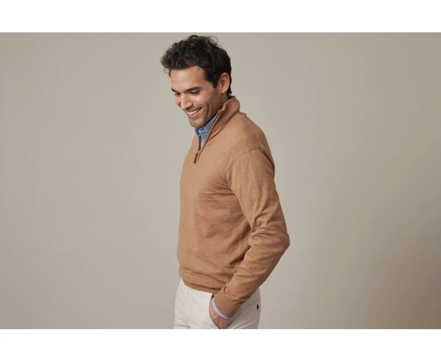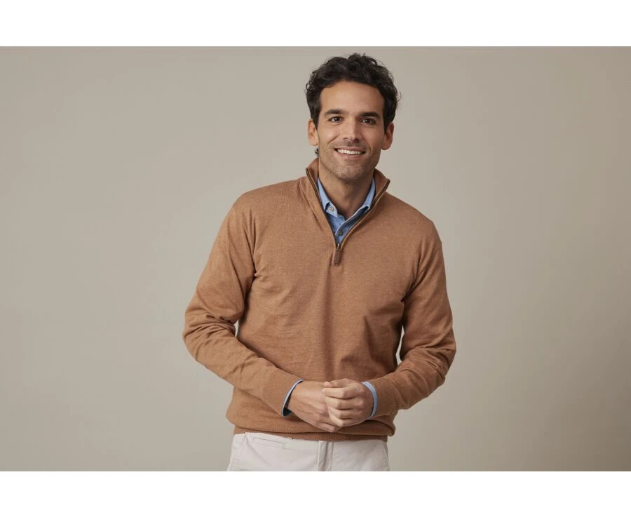 Pull Fin Homme Coton Bio/cachemire Col Zippé Marron Chiné – VLAD