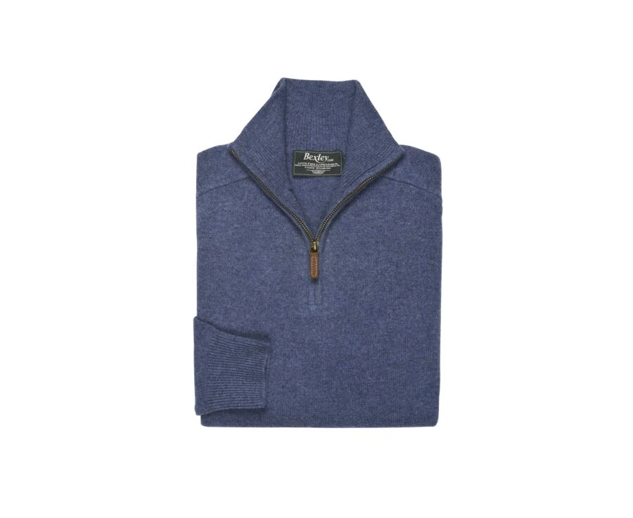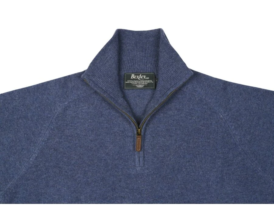 Pull Homme Laine Col Zippé Bleu Foncé Chiné – KENNETH