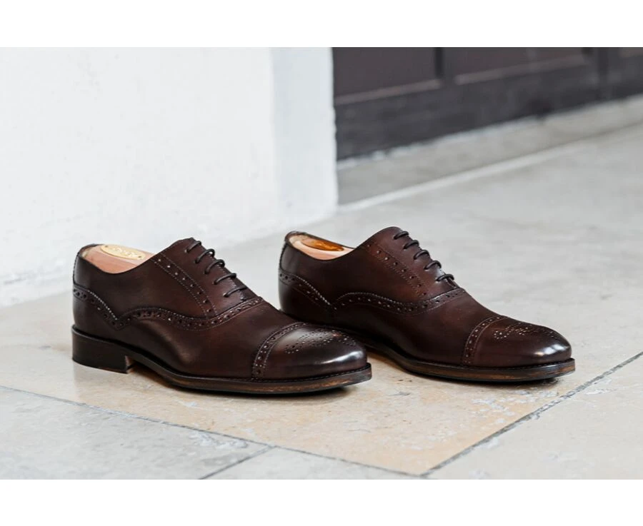Richelieu Homme Chocolat Patiné Semelle Cuir Avec Patin – HILCOTT PATIN