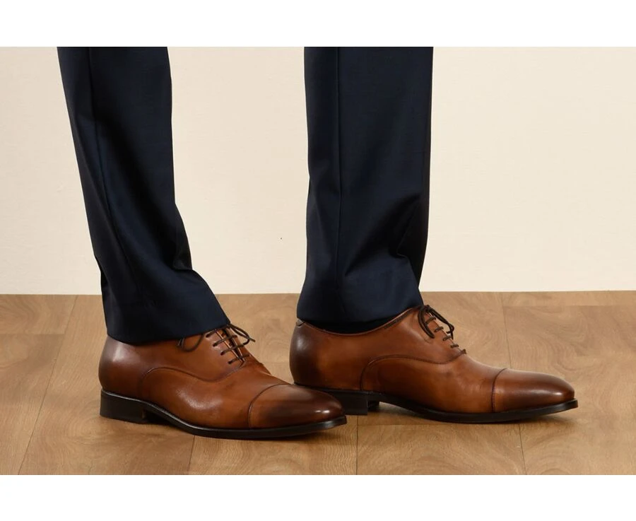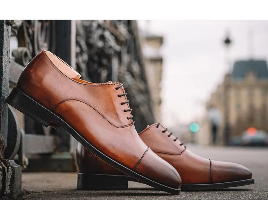 Richelieu Homme Cognac Patiné Semelle Cuir – WINFORD