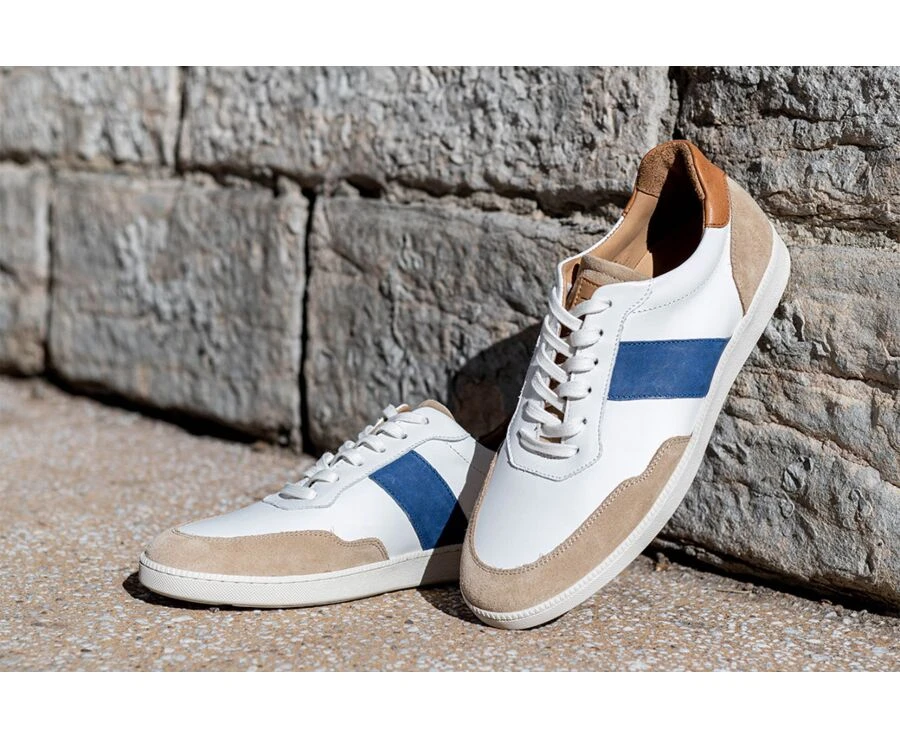 Sneakers Cuir Homme Blanc Beige Et Bleu – BERRINGA