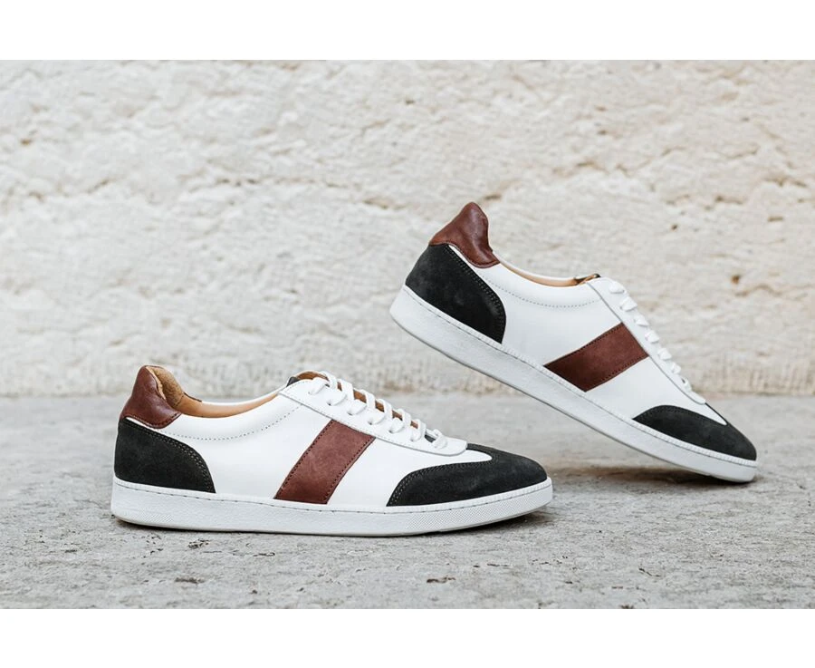 Sneakers Cuir Homme Blanc Et Reglisse – MOYARRA