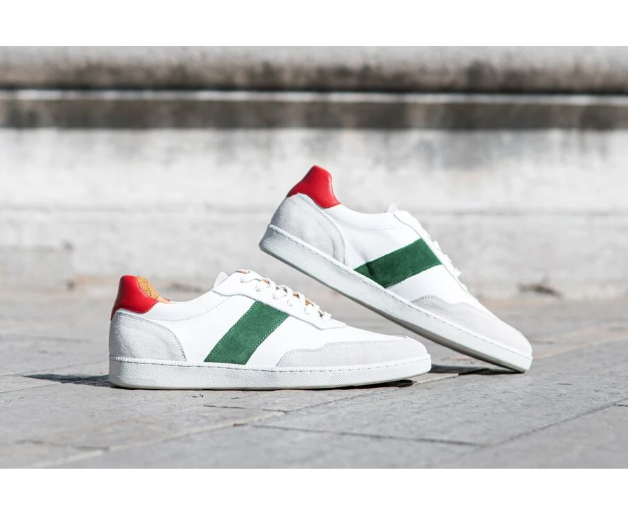 Sneakers Cuir Homme Ecru Et Vert – BERRINGA