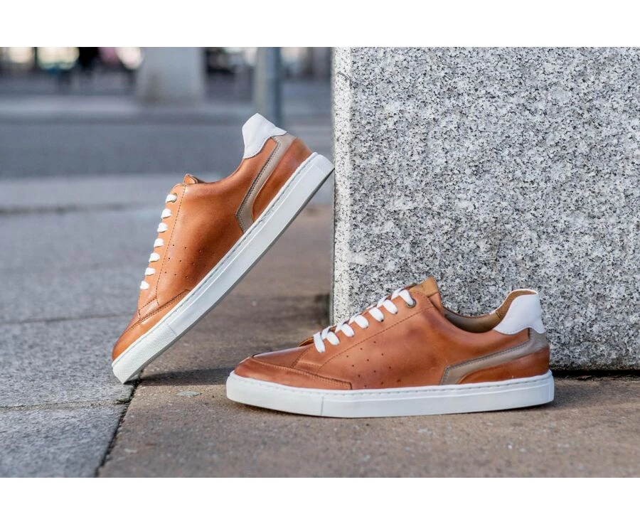 Sneakers Homme Cuir Châtaigne Patiné – BELOKA