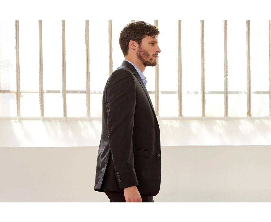 Deux fentes d’aisance latérales et boutonnières bas de manches chevauchantes à 4 boutons.